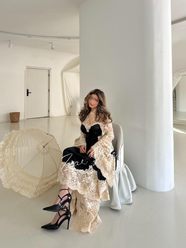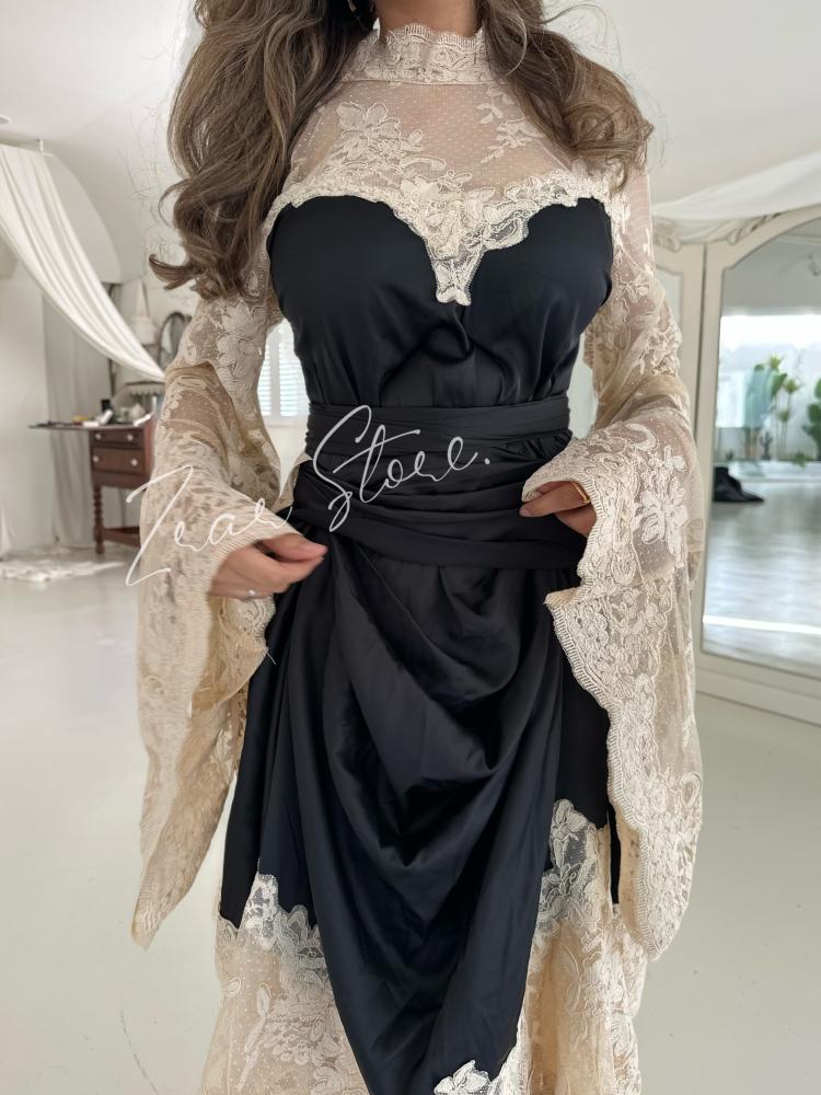 فستان اسود دانتيل قصير يجمع بين الفخامة والأناقة بفضل طبقات الدانتيل الناعمة واللون الأسود الكلاسيكي مع لمسات بيج أنثوية. فستان العيد تصميمه القصير يبرز جمال ساقيك ويمنحك حرية الحركة، ليكون خيارك المثالي للسهرات والمناسبات الخاصة.