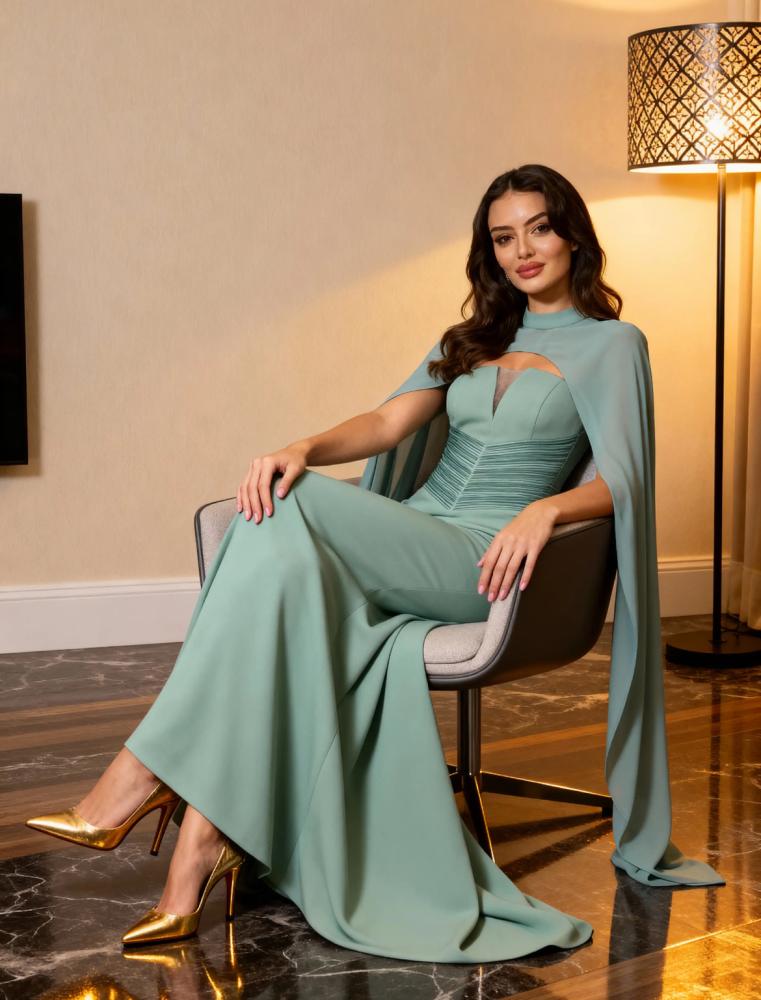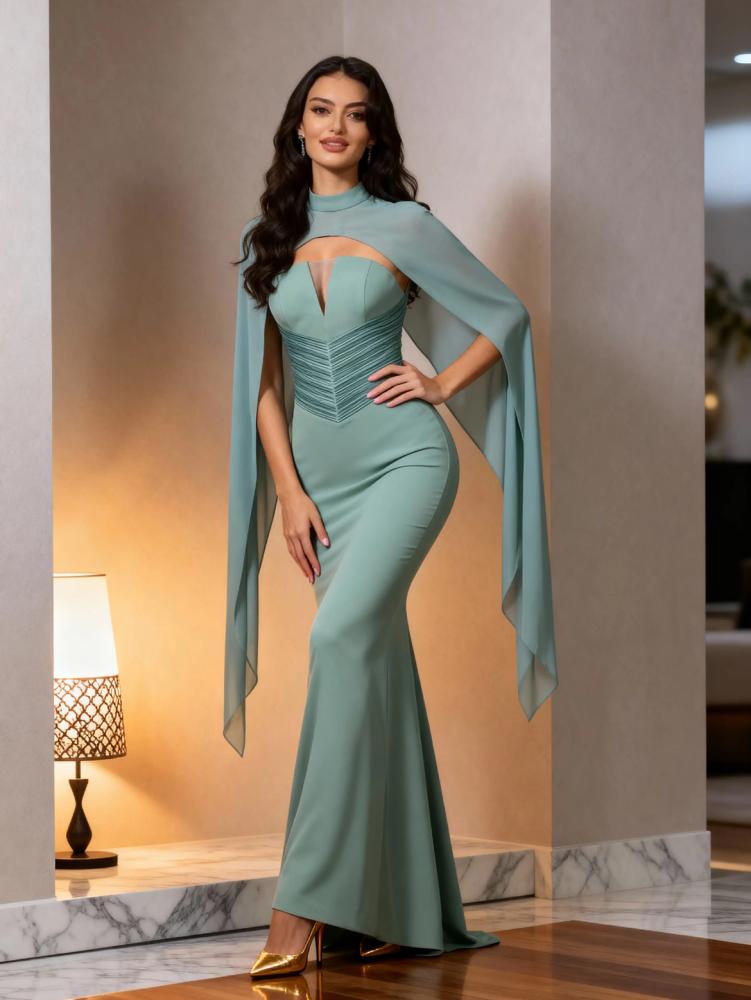 فستان سهرة بقصة كورسيه وكيب