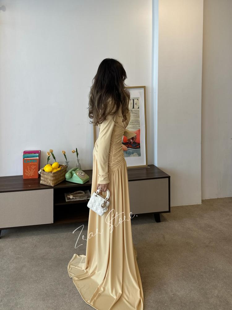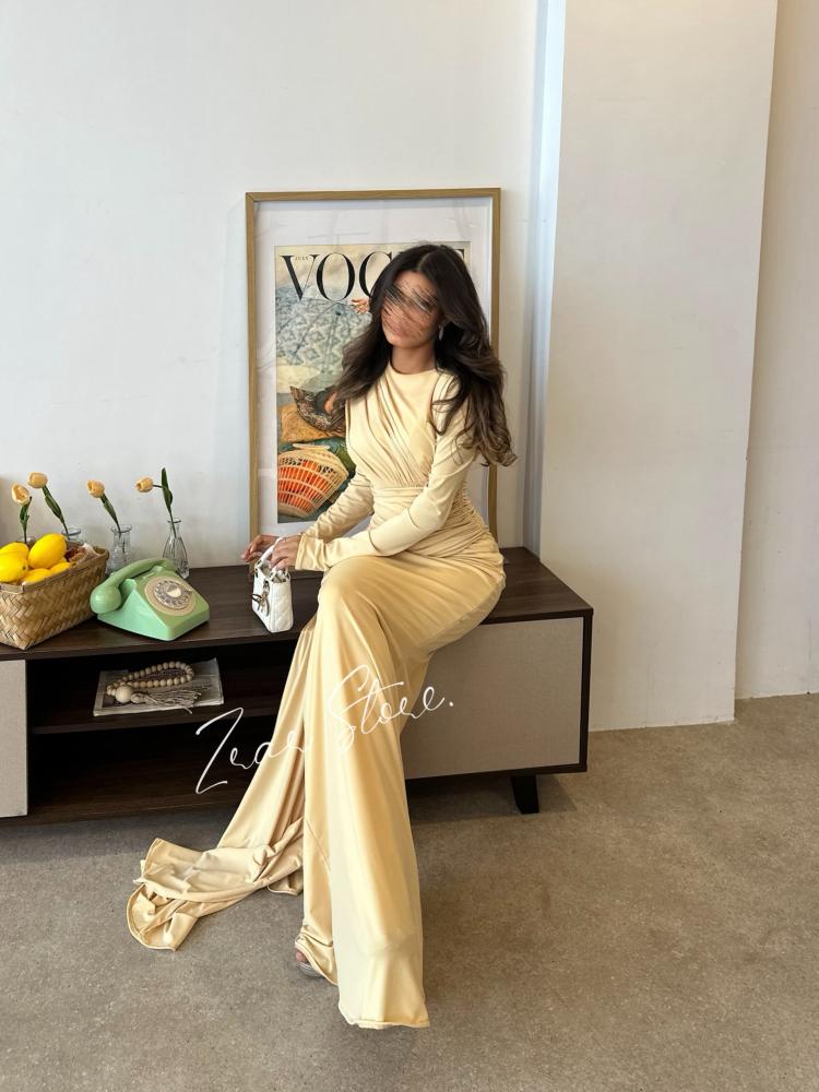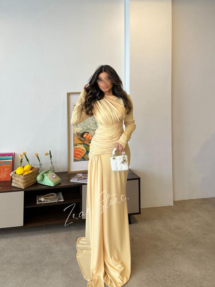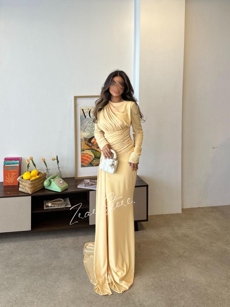 تألقي بإشراقة لافتة مع فستان اصفر طويل من فانيلا لايت المرنة، بتصميم درابيه أنيق يناسب جميع المقاسات والمناسبات.