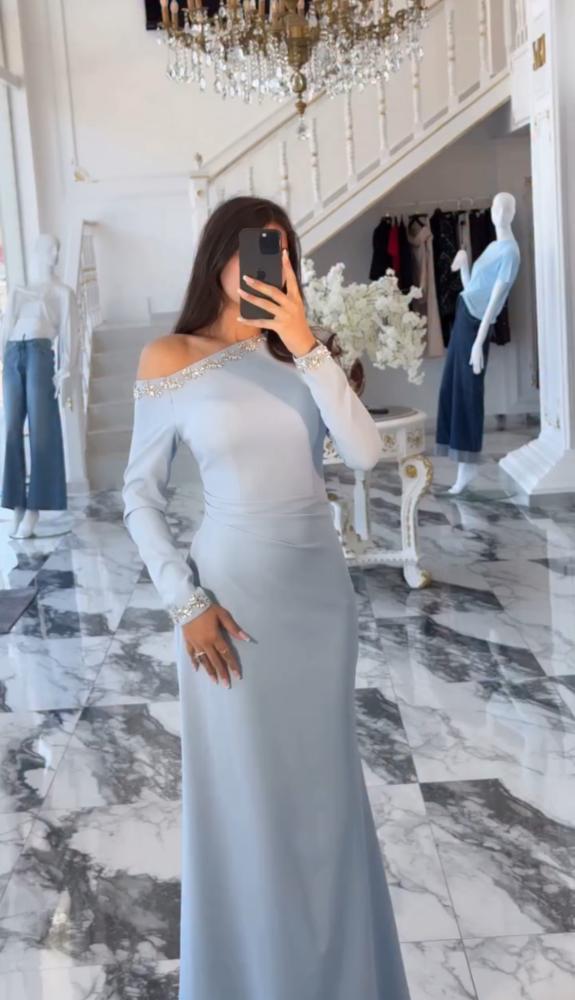 فستان كريب بكريستال بيبي بلو